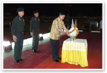 เทียนชัยถวายพระพร ณ สนามกีฬา จว.ราชบุรี โดย จก.กช. และคุณวิภาภรณ์ วรศาสตร์ ประธานสมาคมแม่บ้าน ทบ.สาขา กช. ร่วมวางพานพุ่มถวายราช