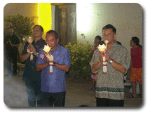 พล.ท.ชัยยุทธ เทพยสุวรรณ จก.กช. พร้อมด้วยข้าราชการ พ่อค้า และประชาชน ร่วมพิธีเวียนเทียนเนื่องในวันอาสาฬหบูชา ประจำปี 2548 ณ วัด